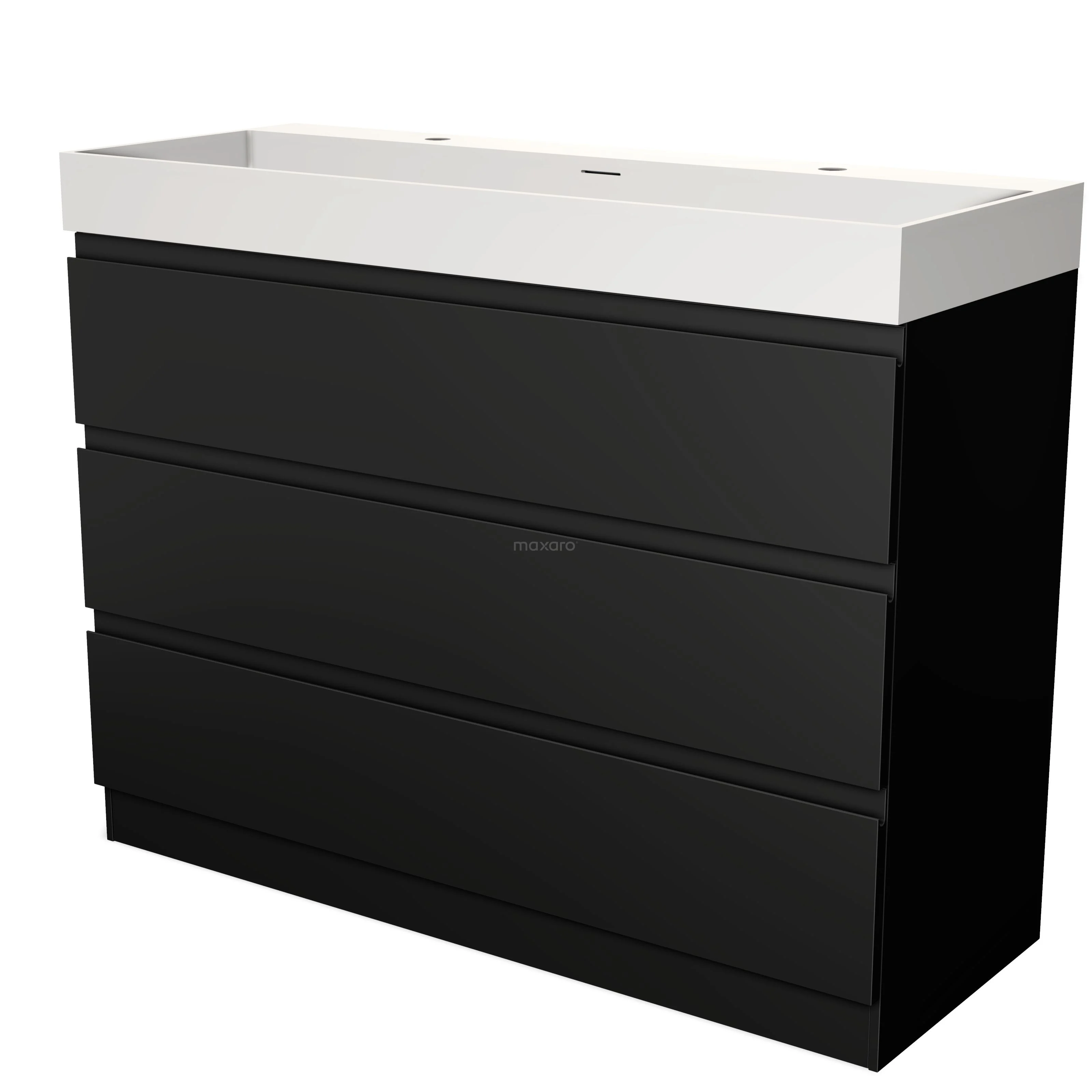 Modulo Waschtische | 120 cm Matt Schwarz Grifflos front Solid Surface 3 stehende Schubladen