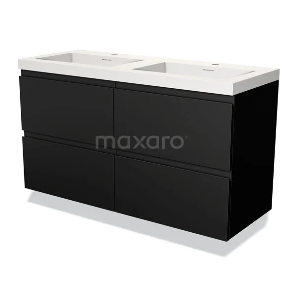 Modulo Waschtische | 120 cm Matt Schwarz Grifflos front Solid Surface 4 Schubladen