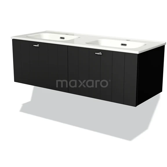 Modulo Waschtische | 120 cm Matt Schwarz Lamelle front Keramik 2 nebeneinanderliegende Schubladen