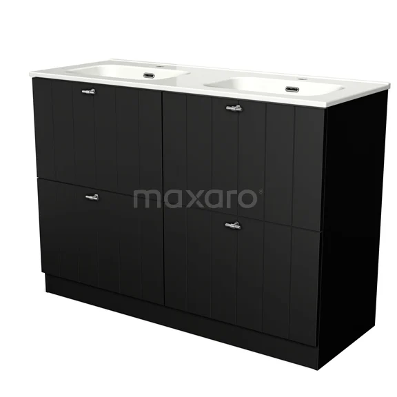 Modulo Waschtische | 120 cm Matt Schwarz Lamelle front Keramik 4 hohe Schubladen stehend