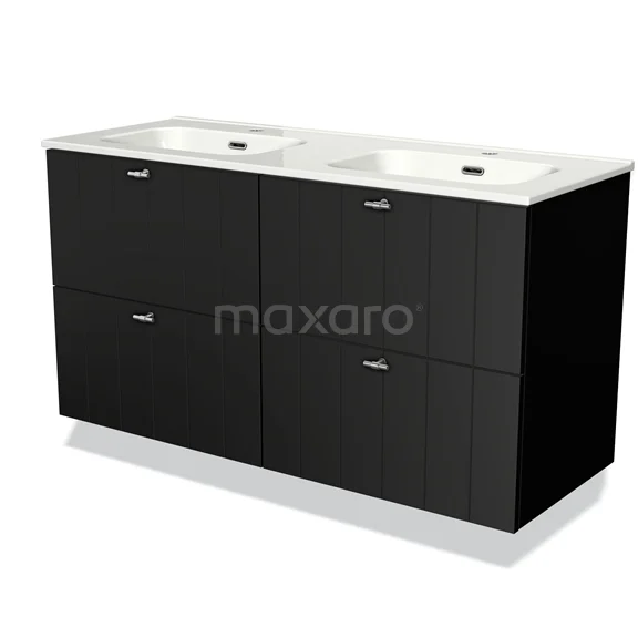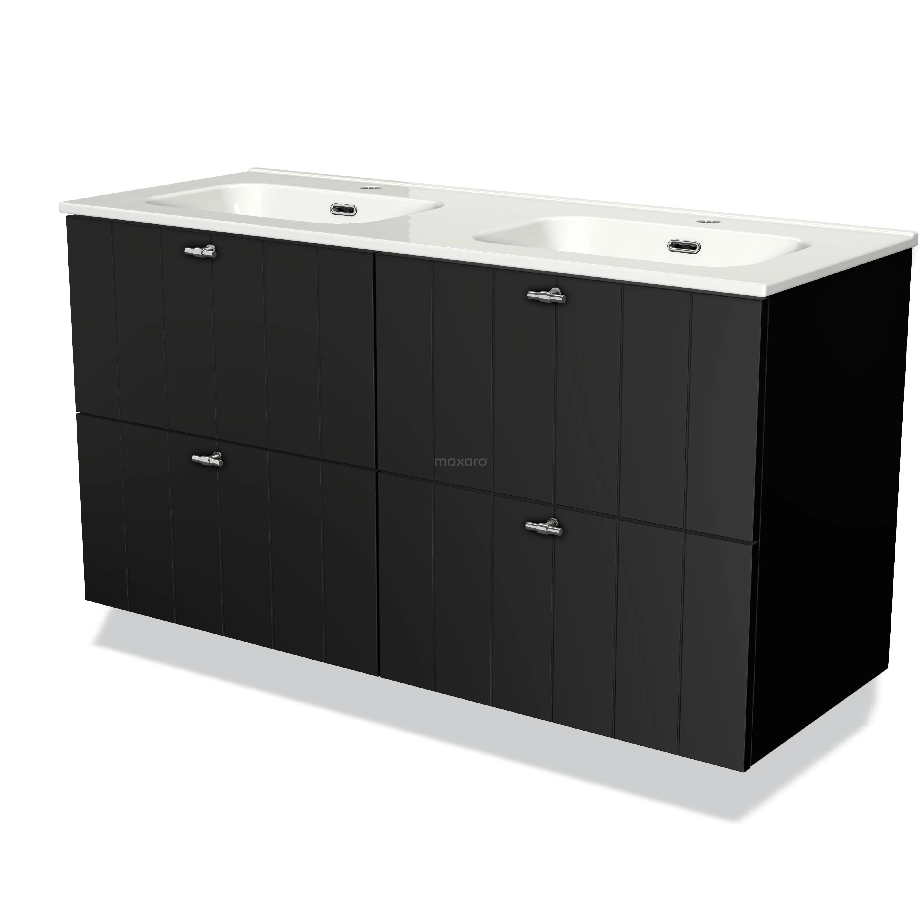 Modulo Waschtische | 120 cm Matt Schwarz Lamelle front Keramik 4 Schubladen
