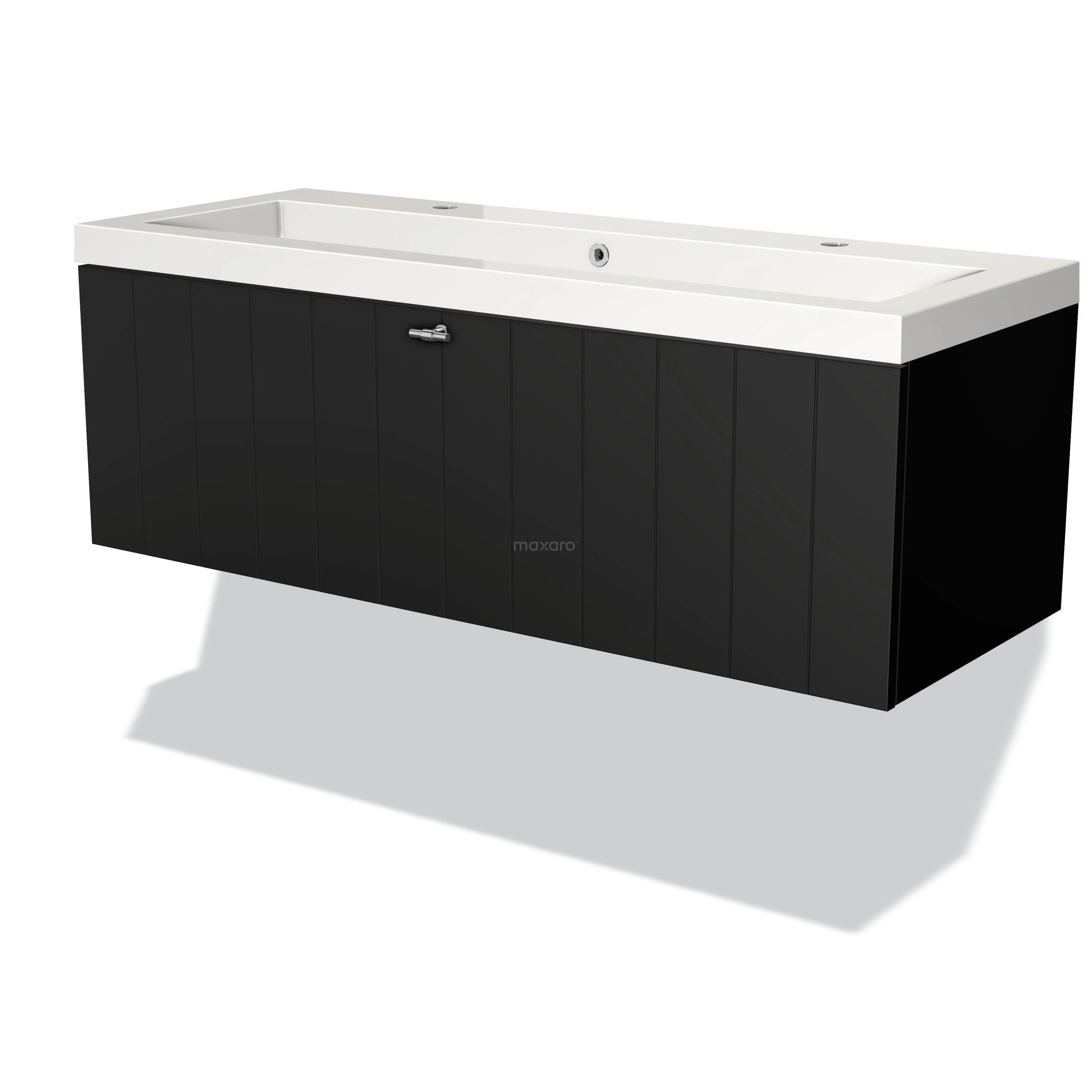 Modulo Waschtische | 120 cm Matt Schwarz Lamelle front Mineralguss 1 Schublade