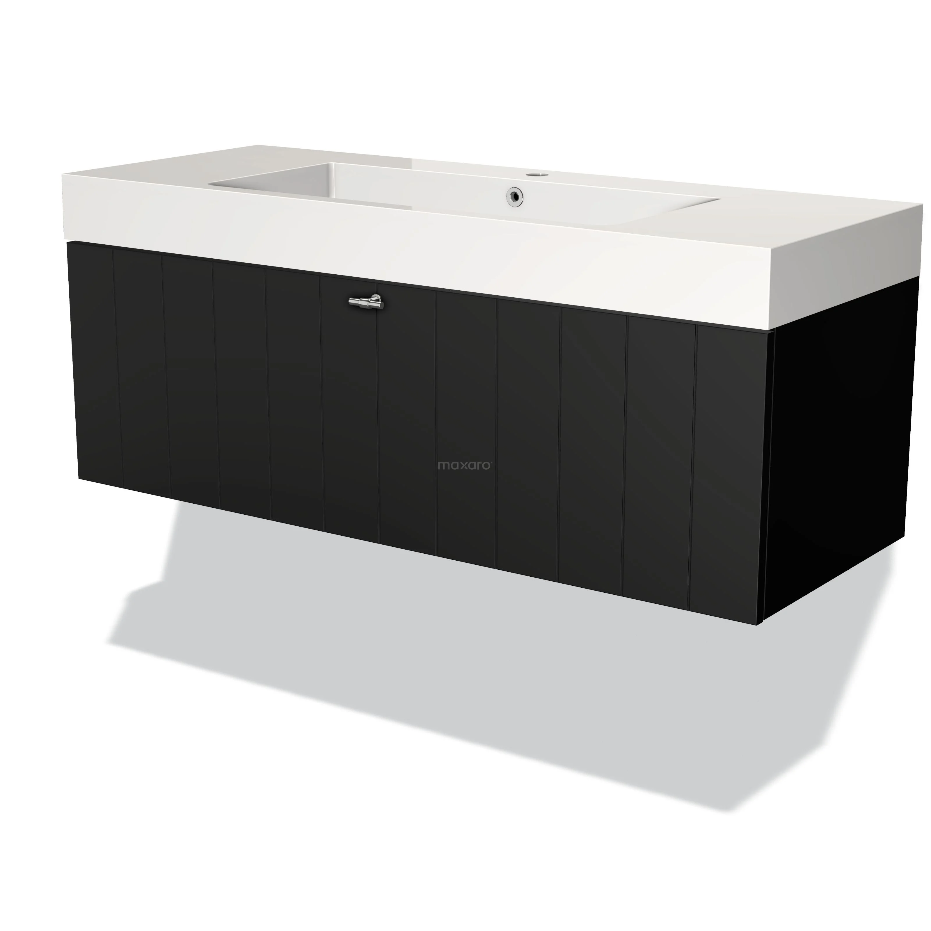 Modulo Waschtische | 120 cm Matt Schwarz Lamelle front Mineralguss 1 Schublade