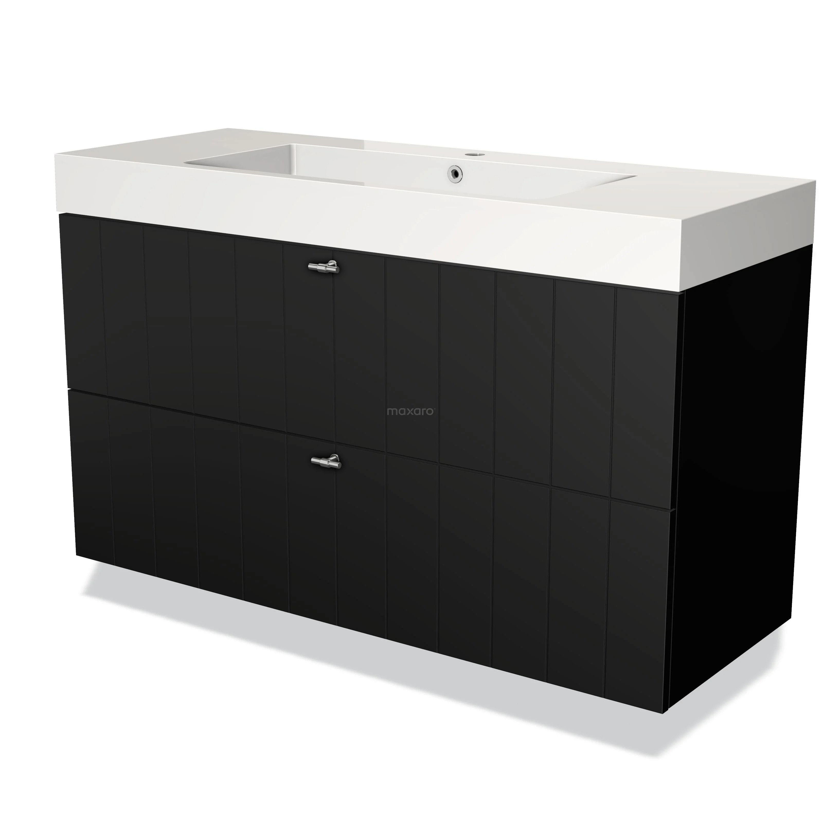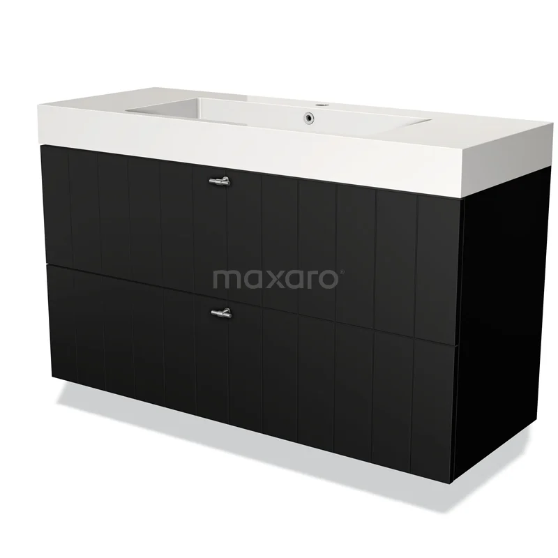 Modulo Waschtische | 120 cm Matt Schwarz Lamelle front Mineralguss 2 übereinanderliegende Schubladen