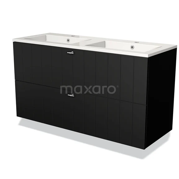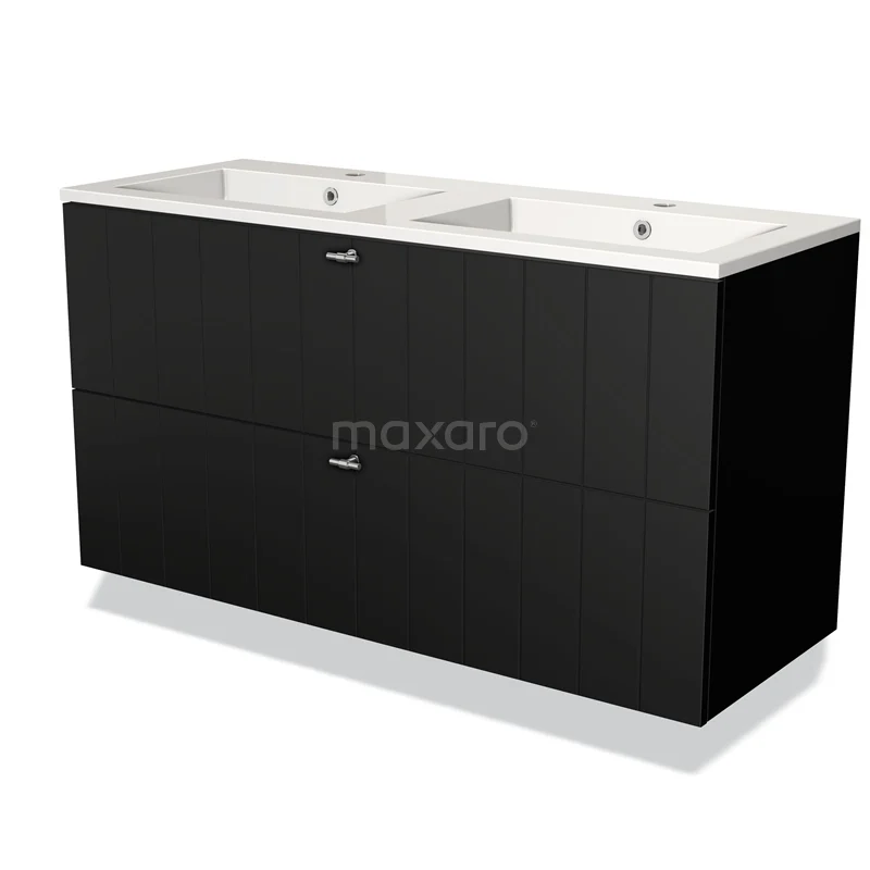 Modulo Waschtische | 120 cm Matt Schwarz Lamelle front Mineralguss 2 übereinanderliegende Schubladen