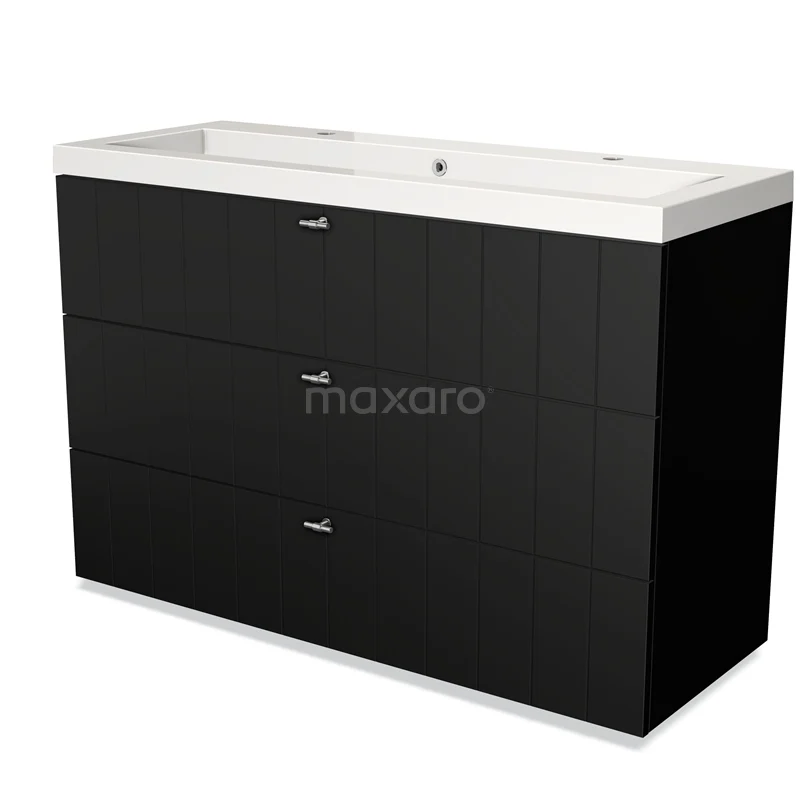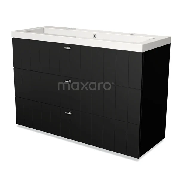 Modulo Waschtische | 120 cm Matt Schwarz Lamelle front Mineralguss 3 Schubladen