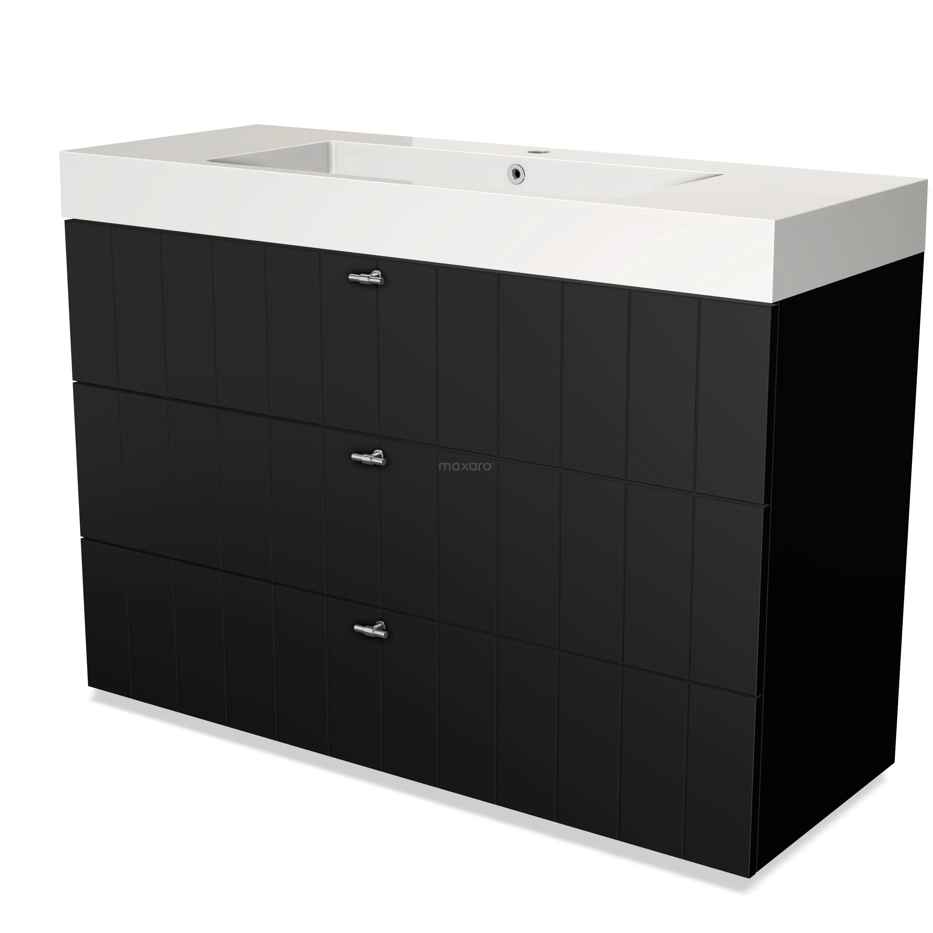 Modulo Waschtische | 120 cm Matt Schwarz Lamelle front Mineralguss 3 Schubladen