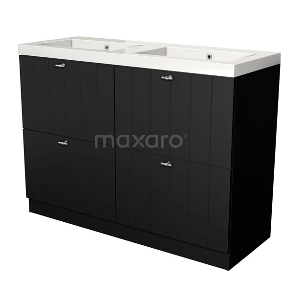 Modulo Waschtische | 120 cm Matt Schwarz Lamelle front Mineralguss 4 hohe Schubladen stehend