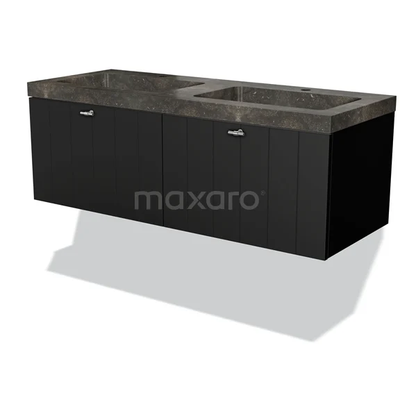 Modulo Waschtische | 120 cm Matt Schwarz Lamelle front Naturstein 2 nebeneinanderliegende Schubladen