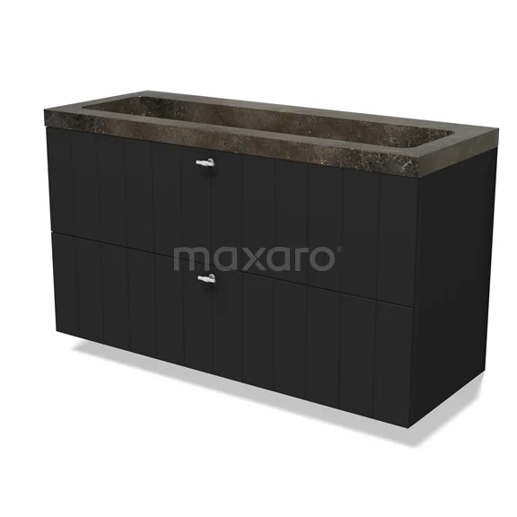 Modulo Waschtische | 120 cm Matt Schwarz Lamelle front Naturstein 2 übereinanderliegende Schubladen