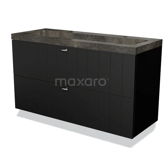 Modulo Waschtische | 120 cm Matt Schwarz Lamelle front Naturstein 2 übereinanderliegende Schubladen