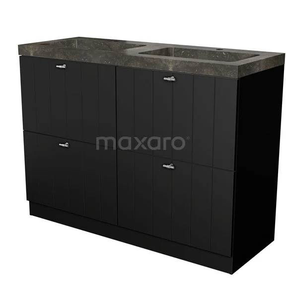 Modulo Waschtische | 120 cm Matt Schwarz Lamelle front Naturstein 4 hohe Schubladen stehend