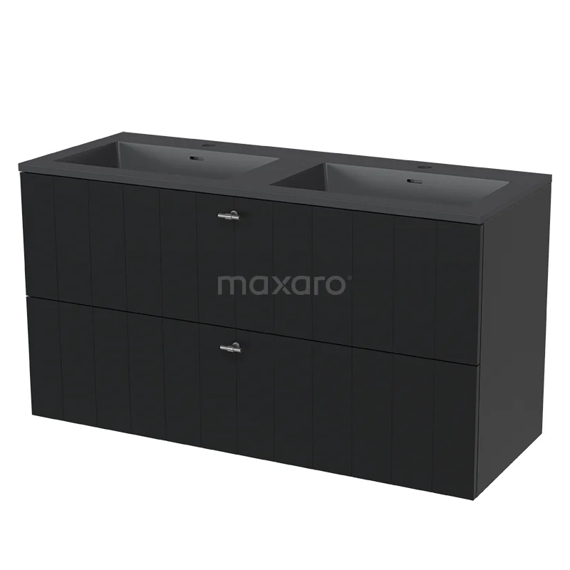 Modulo Waschtische | 120 cm Matt Schwarz Lamelle front Quarz 2 übereinanderliegende Schubladen