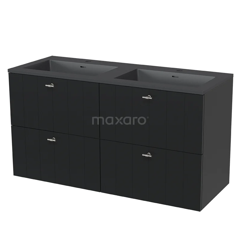 Modulo Waschtische | 120 cm Matt Schwarz Lamelle front Quarz 4 Schubladen