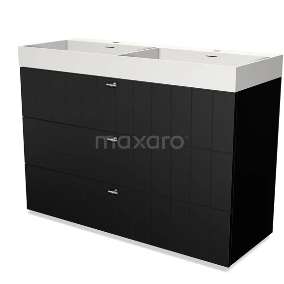Modulo Waschtische | 120 cm Matt Schwarz Lamelle front Solid Surface 3 Schubladen