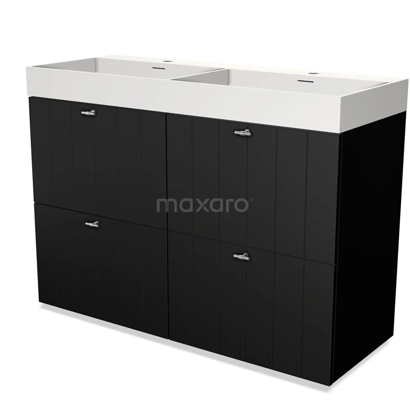 Modulo Waschtische | 120 cm Matt Schwarz Lamelle front Solid Surface 4 hohe Schubladen