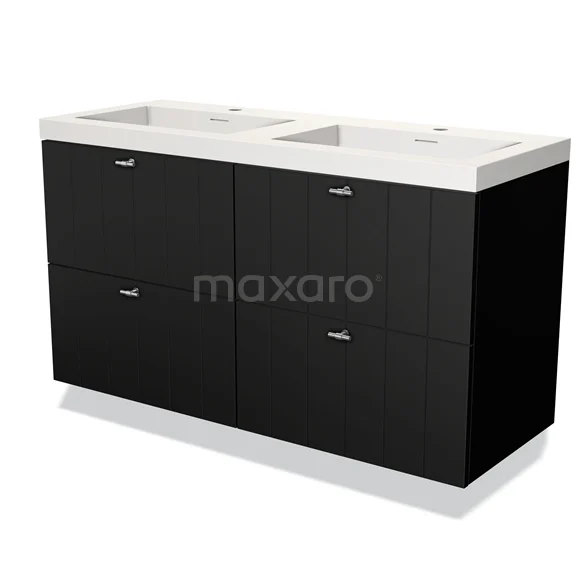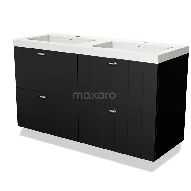 Modulo Waschtische | 120 cm Matt Schwarz Lamelle front Solid Surface 4 Schubladen