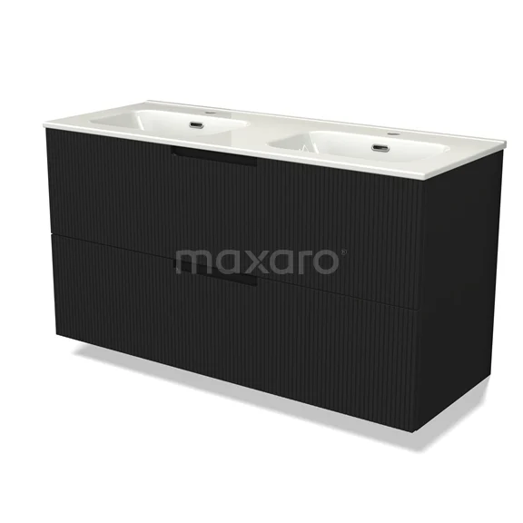Modulo Waschtische | 120 cm Matt Schwarz Linie front Keramik 2 übereinanderliegende Schubladen