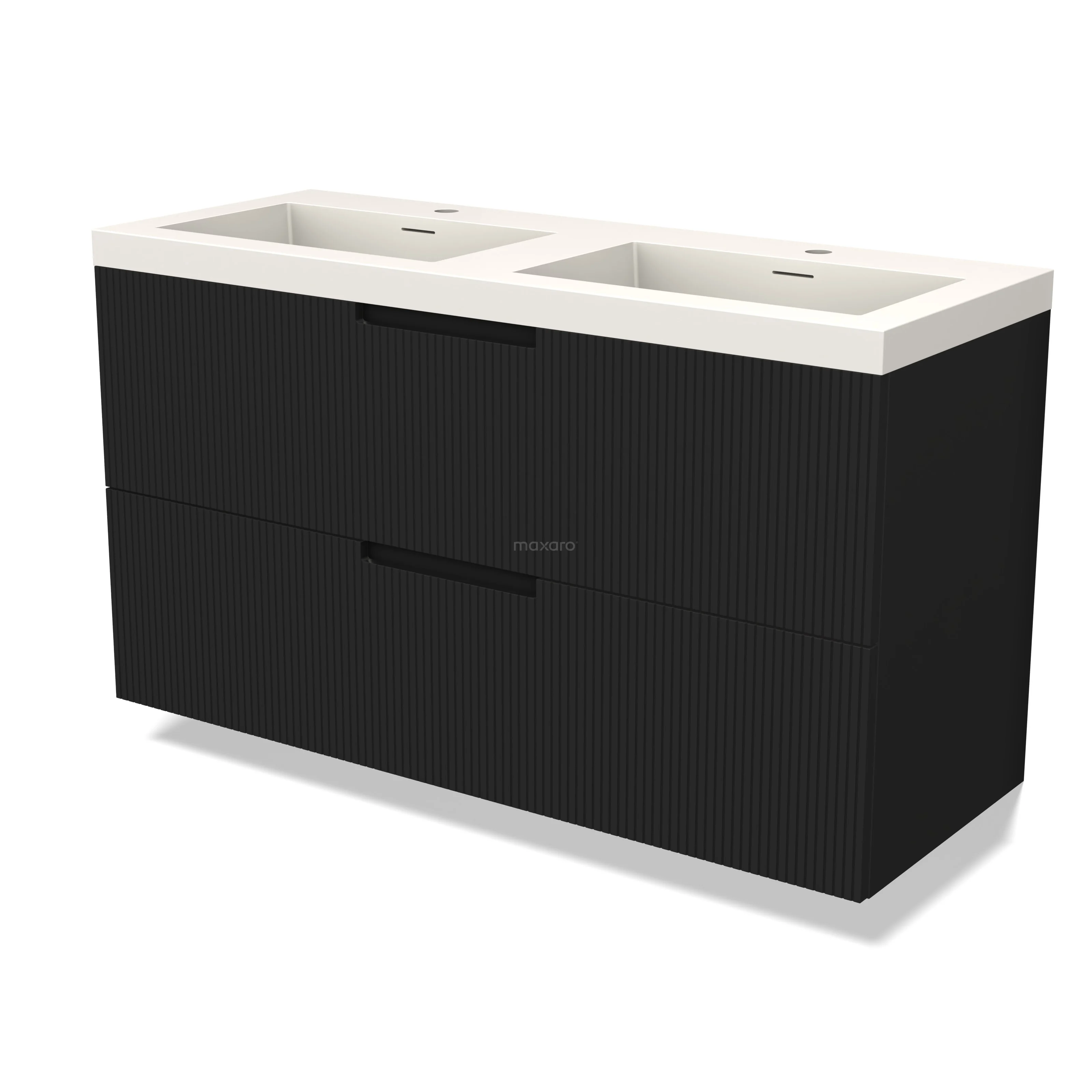 Modulo Waschtische | 120 cm Matt Schwarz Linie front Solid Surface 2 übereinanderliegende Schubladen