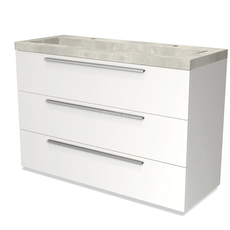 Modulo Waschtische | 120 cm Matt Weiß Flach front Beton 3 Schubladen