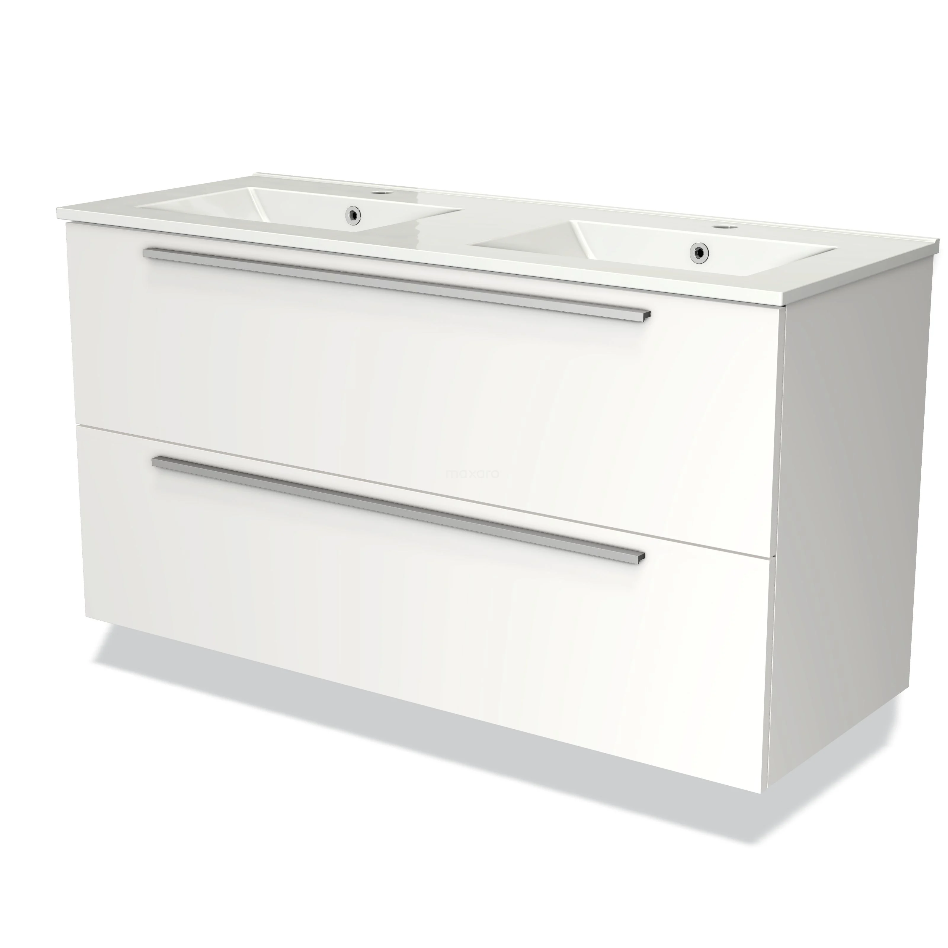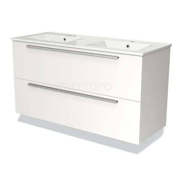 Modulo Waschtische | 120 cm Matt Weiß Flach front Keramik 2 übereinanderliegende Schubladen