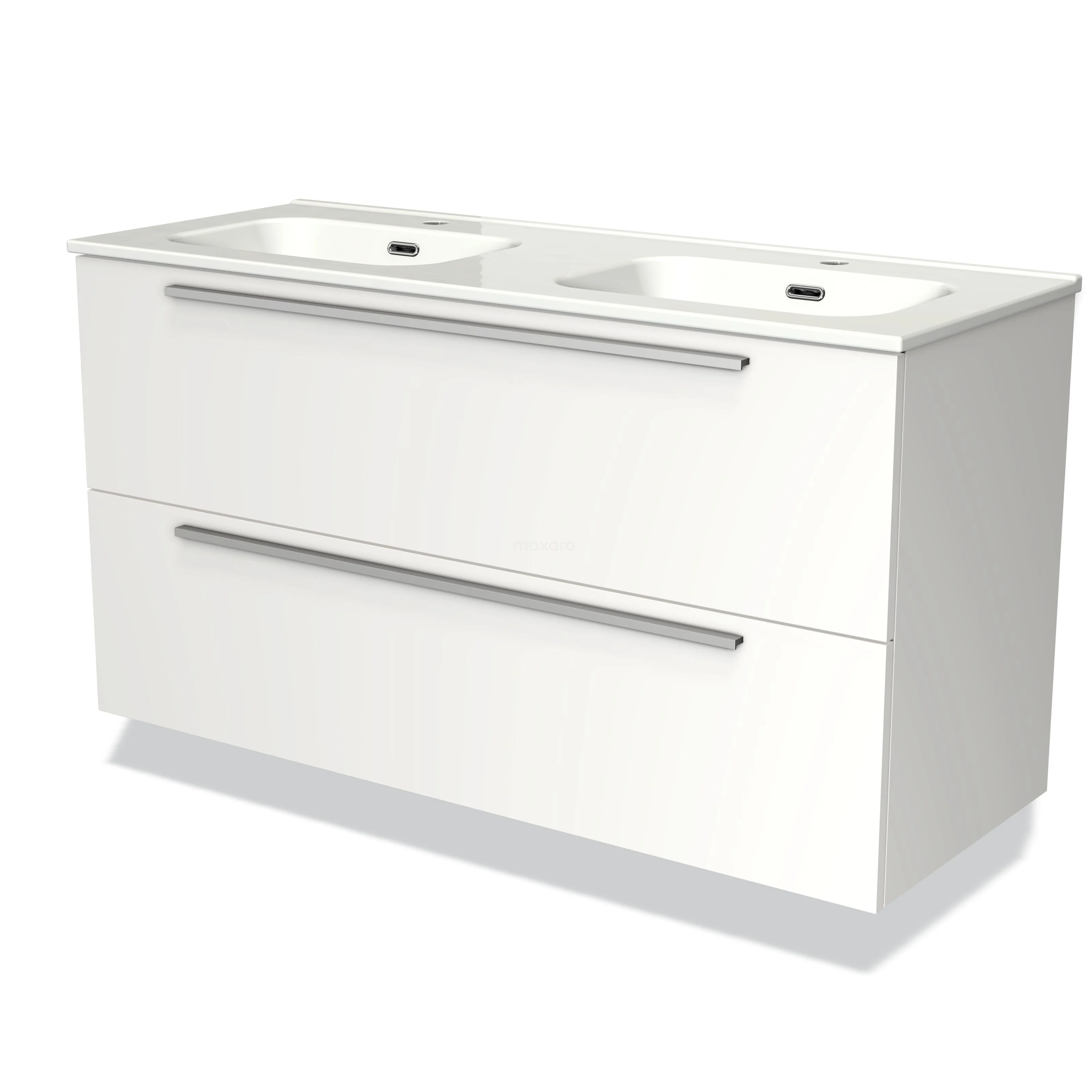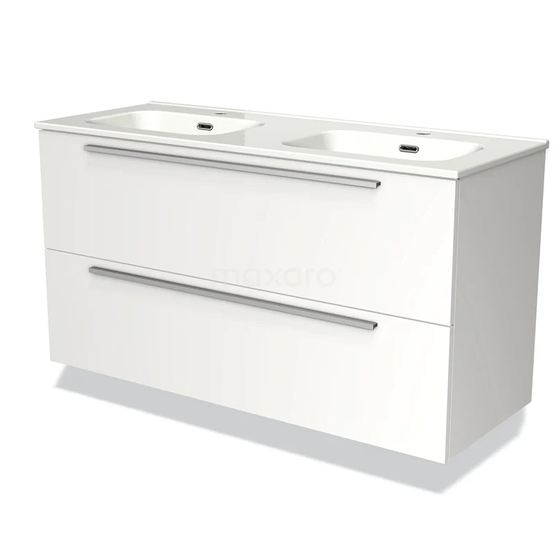 Modulo Waschtische | 120 cm Matt Weiß Flach front Keramik 2 übereinanderliegende Schubladen