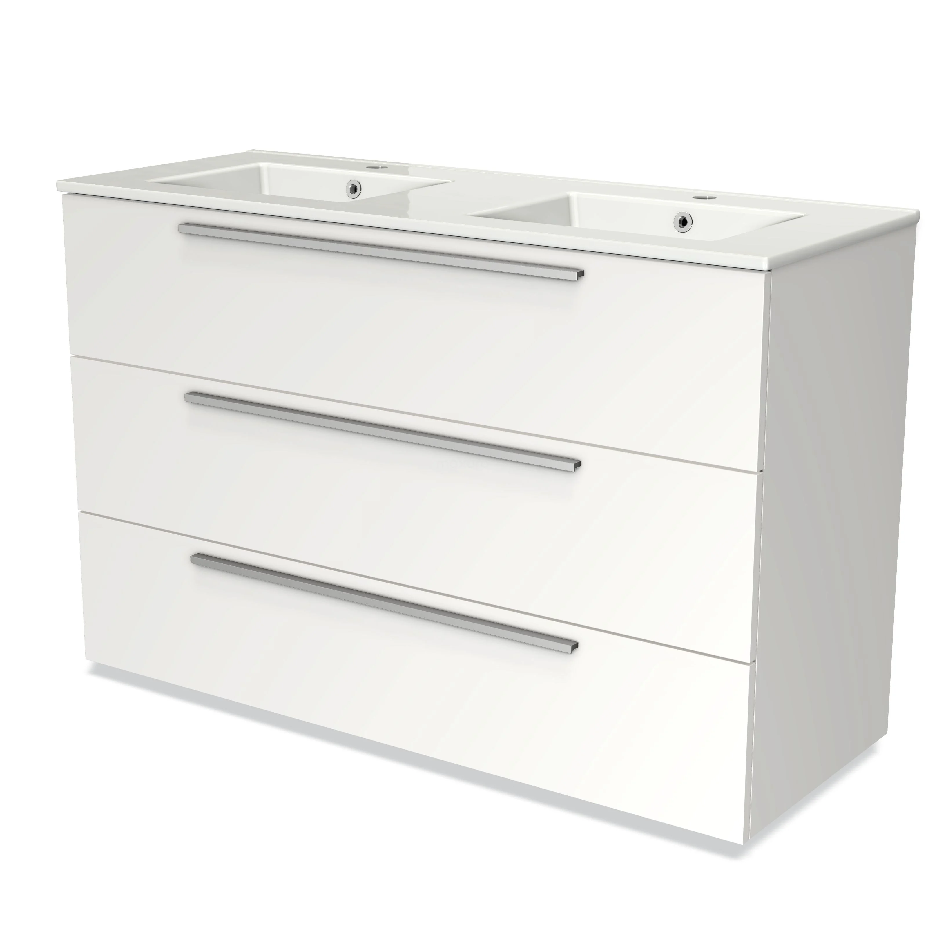 Modulo Waschtische | 120 cm Matt Weiß Flach front Keramik 3 Schubladen