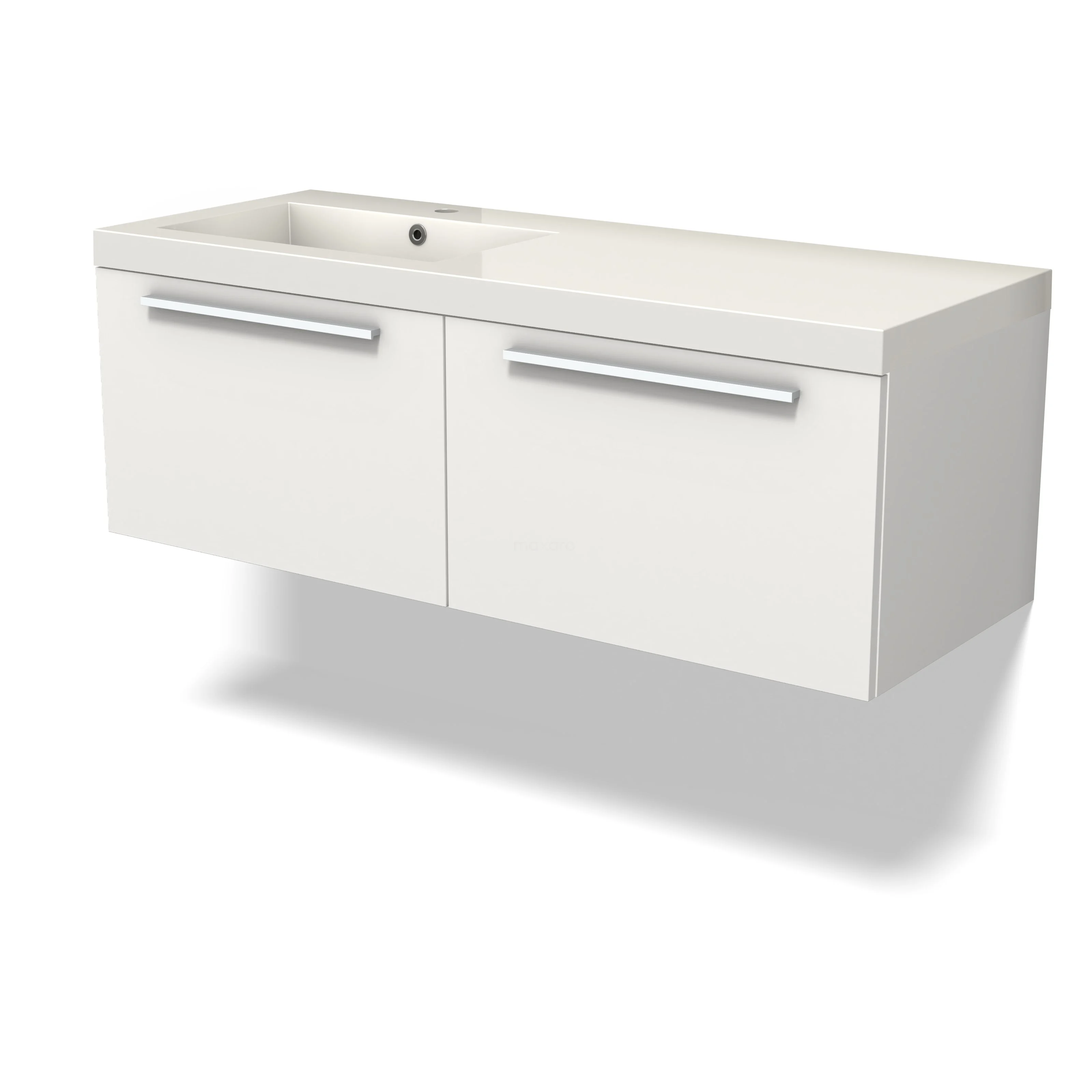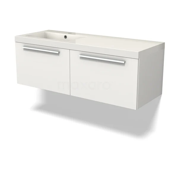 Modulo Waschtische | 120 cm Matt Weiß Flach front Mineralguss 2 nebeneinanderliegende Schubladen