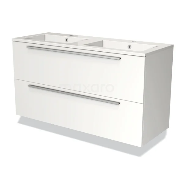 Modulo Waschtische | 120 cm Matt Weiß Flach front Mineralguss 2 übereinanderliegende Schubladen