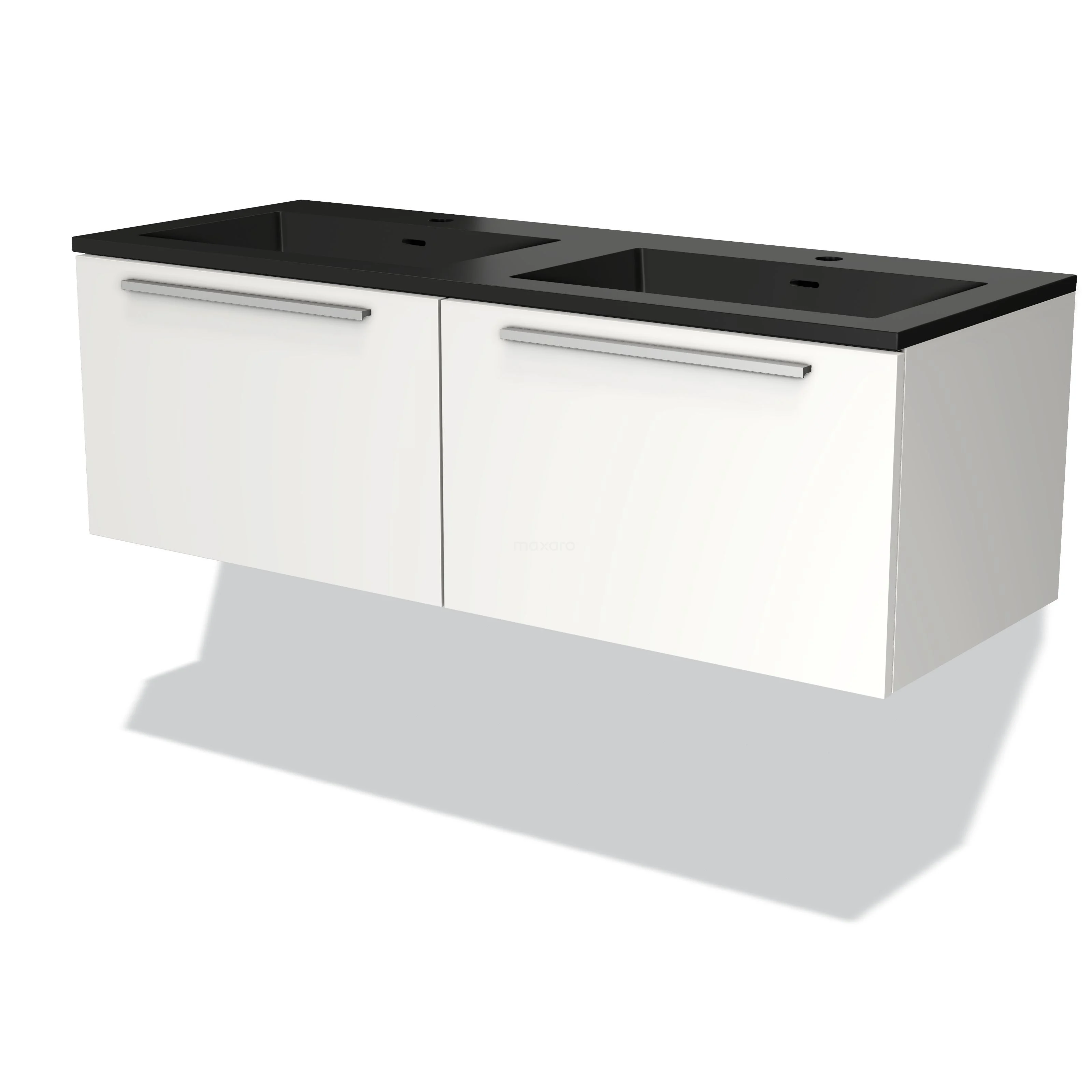 Modulo Waschtische | 120 cm Matt Weiß Flach front Quarz 2 nebeneinanderliegende Schubladen