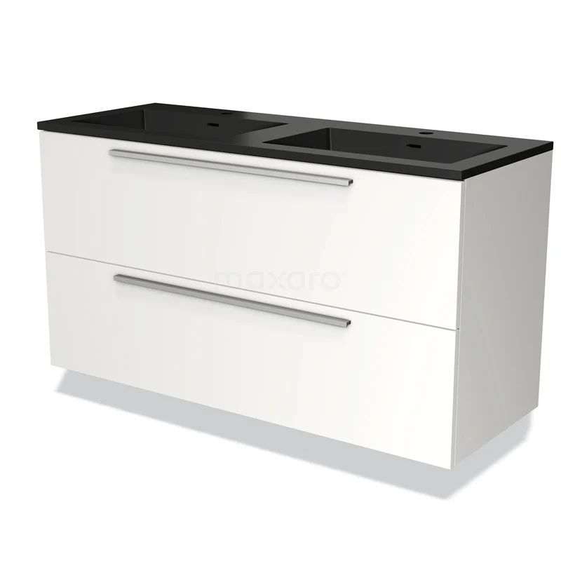 Modulo Waschtische | 120 cm Matt Weiß Flach front Quarz 2 übereinanderliegende Schubladen