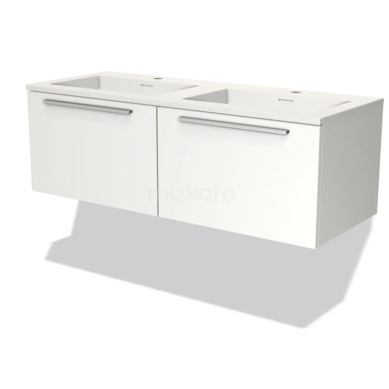Modulo Waschtische | 120 cm Matt Weiß Flach front Solid Surface 2 nebeneinanderliegende Schubladen
