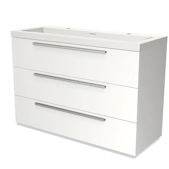 Modulo Waschtische | 120 cm Matt Weiß Flach front Solid Surface 3 Schubladen