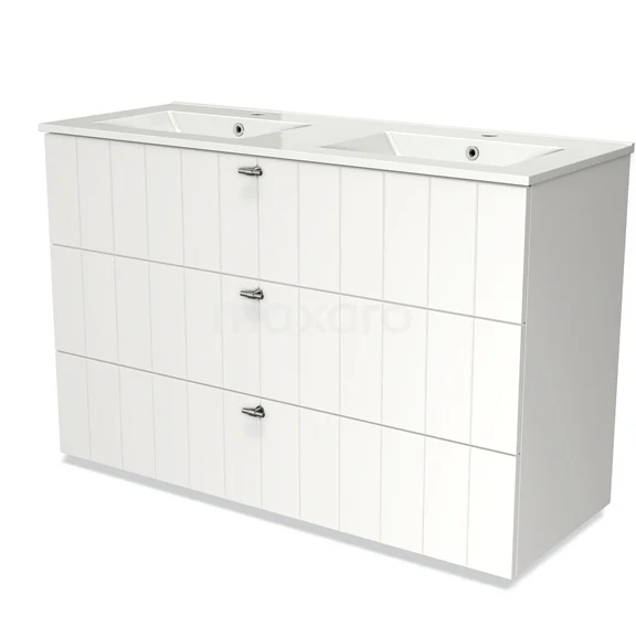 Modulo Waschtische | 120 cm Matt Weiß Lamelle front Keramik 3 Schubladen