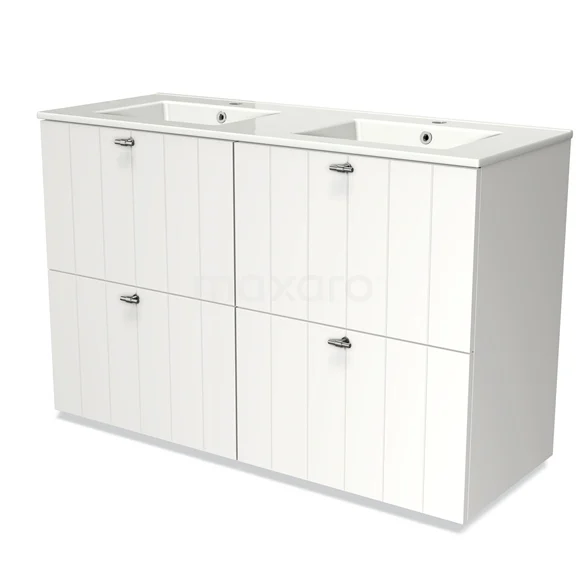 Modulo Waschtische | 120 cm Matt Weiß Lamelle front Keramik 4 hohe Schubladen