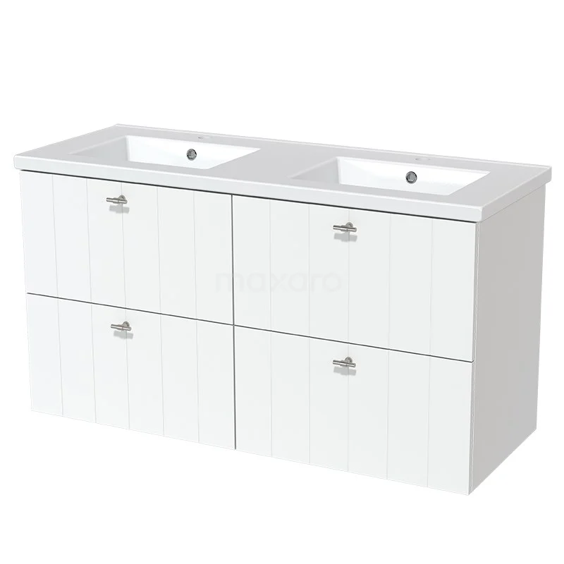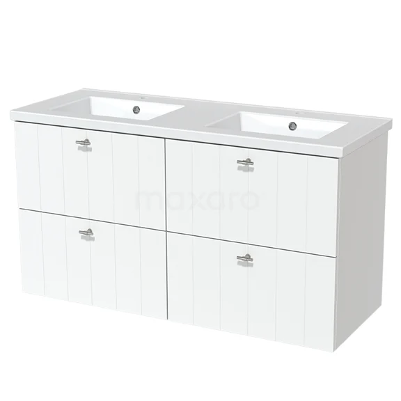 Modulo Waschtische | 120 cm Matt Weiß Lamelle front Keramik 4 Schubladen