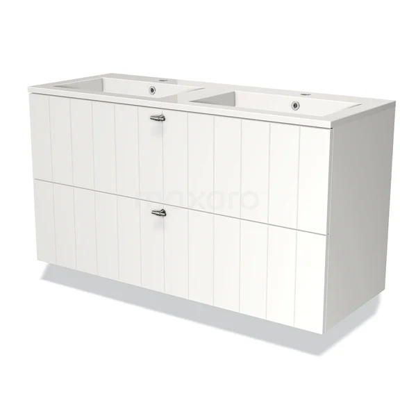 Modulo Waschtische | 120 cm Matt Weiß Lamelle front Mineralguss 2 übereinanderliegende Schubladen