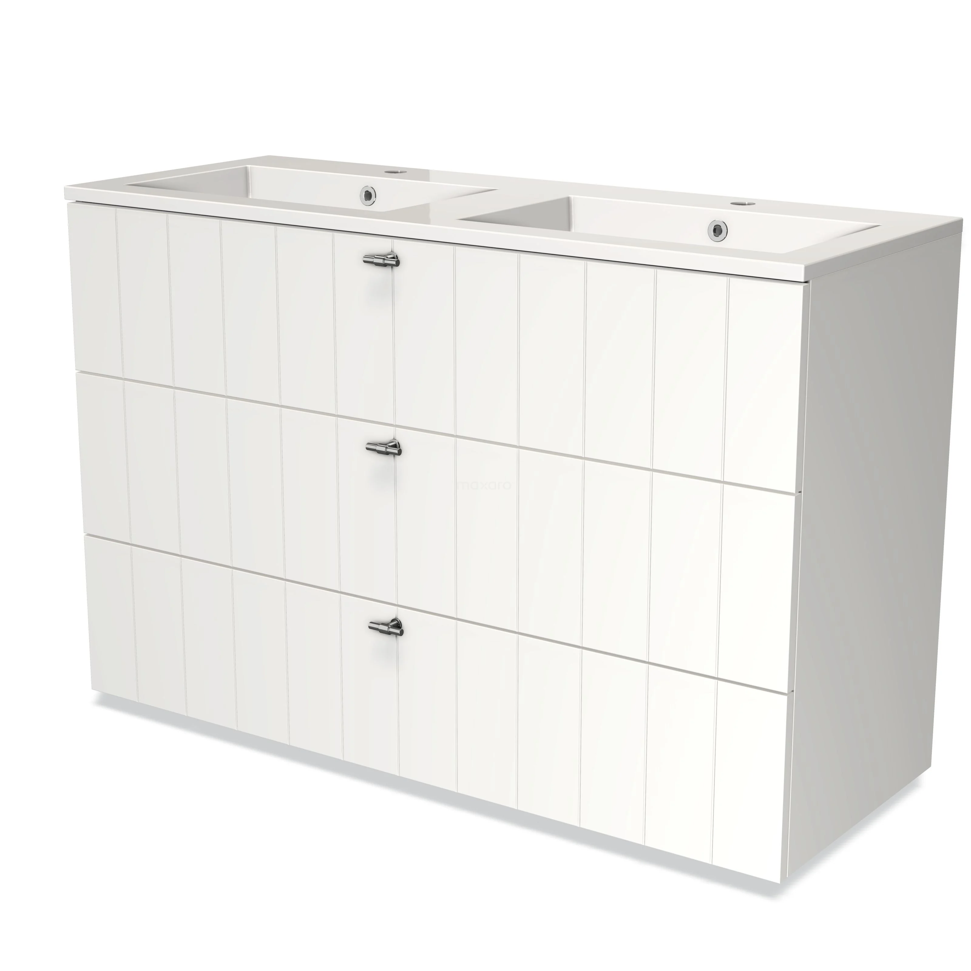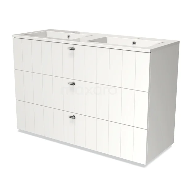 Modulo Waschtische | 120 cm Matt Weiß Lamelle front Mineralguss 3 Schubladen
