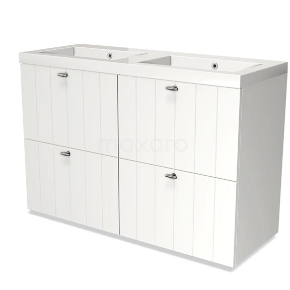 Modulo Waschtische | 120 cm Matt Weiß Lamelle front Mineralguss 4 hohe Schubladen