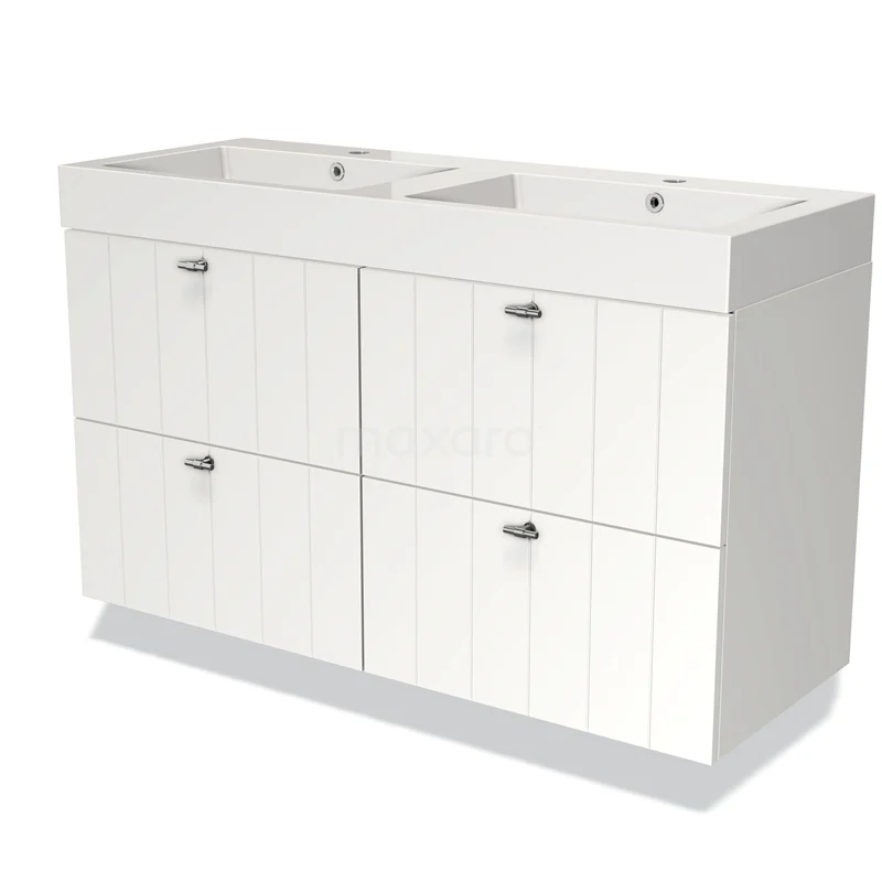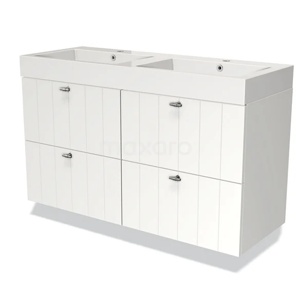 Modulo Waschtische | 120 cm Matt Weiß Lamelle front Mineralguss 4 Schubladen