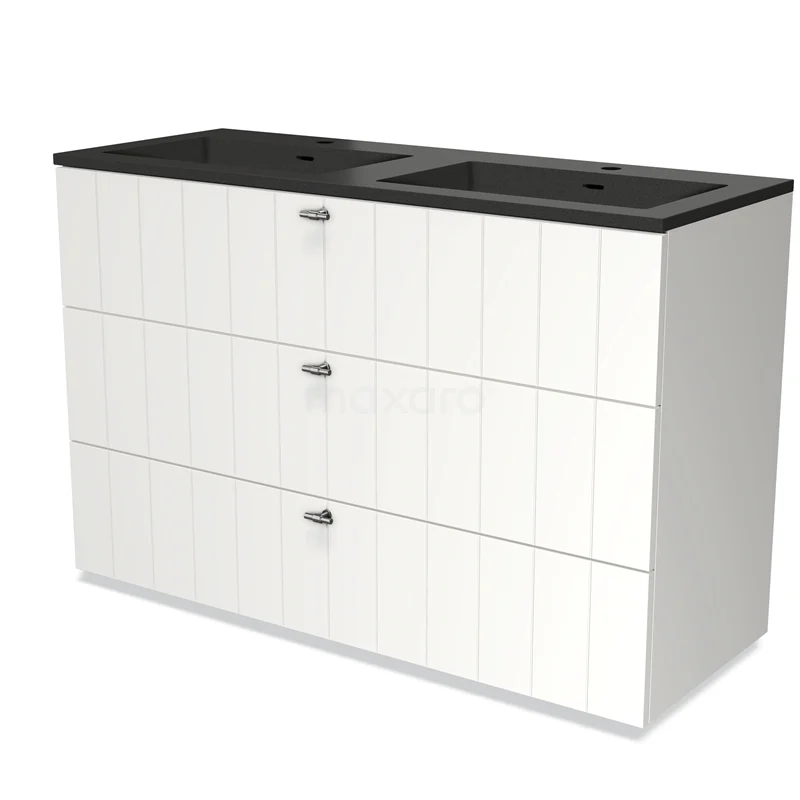 Modulo Waschtische | 120 cm Matt Weiß Lamelle front Quarz 3 Schubladen