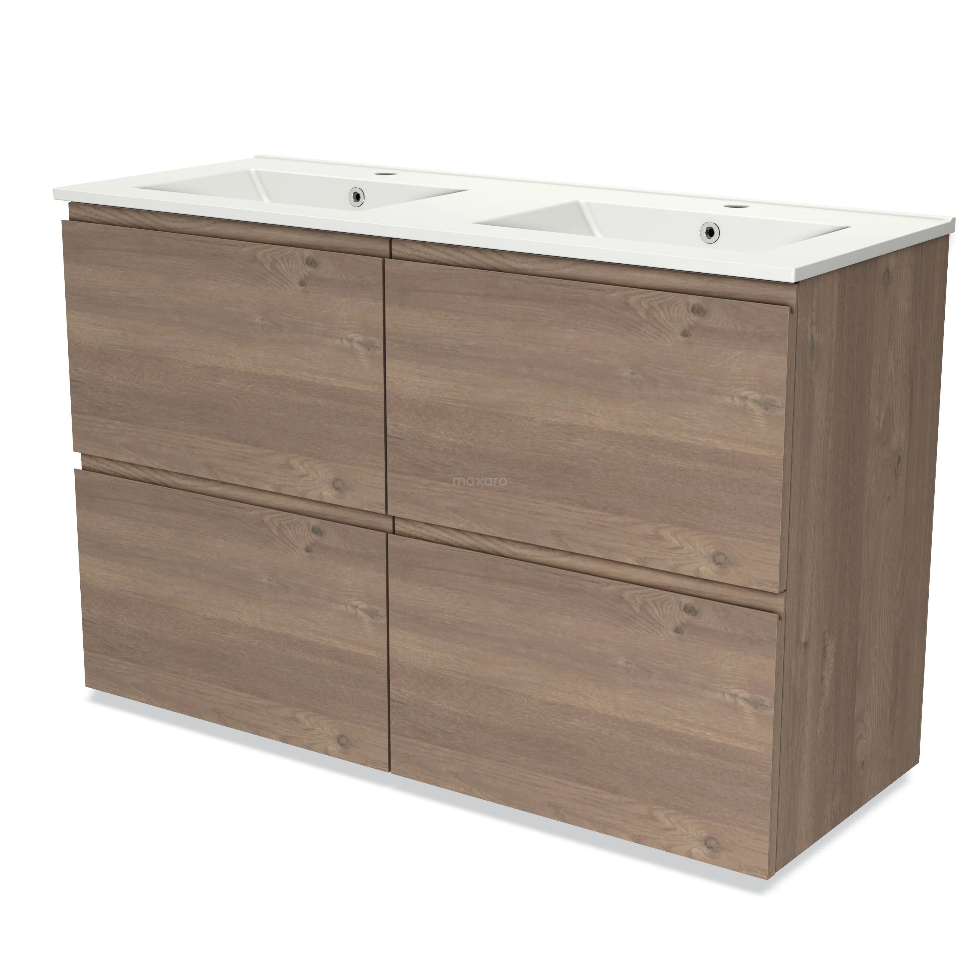Modulo Waschtische | 120 cm Mittelbraune Eiche Grifflos front Keramik 4 hohe Schubladen