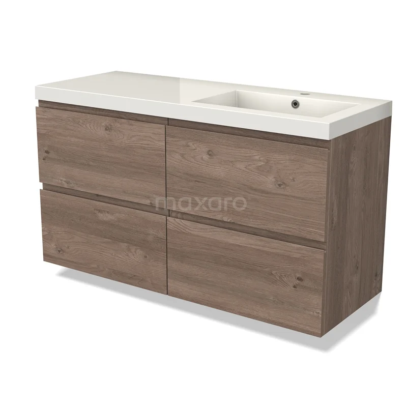 Modulo Waschtische | 120 cm Mittelbraune Eiche Grifflos front Mineralguss 4 Schubladen