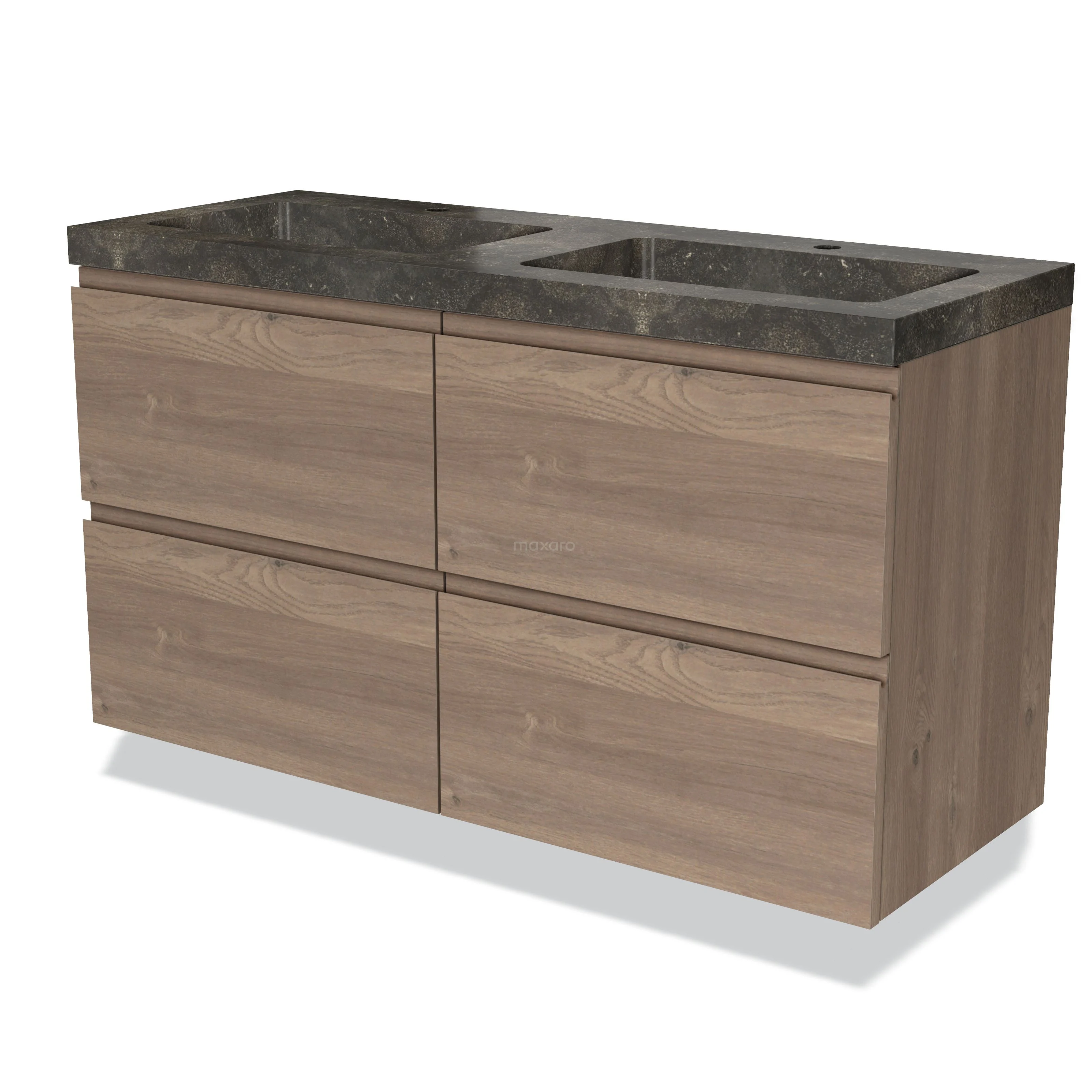 Modulo Waschtische | 120 cm Mittelbraune Eiche Grifflos front Naturstein 4 Schubladen