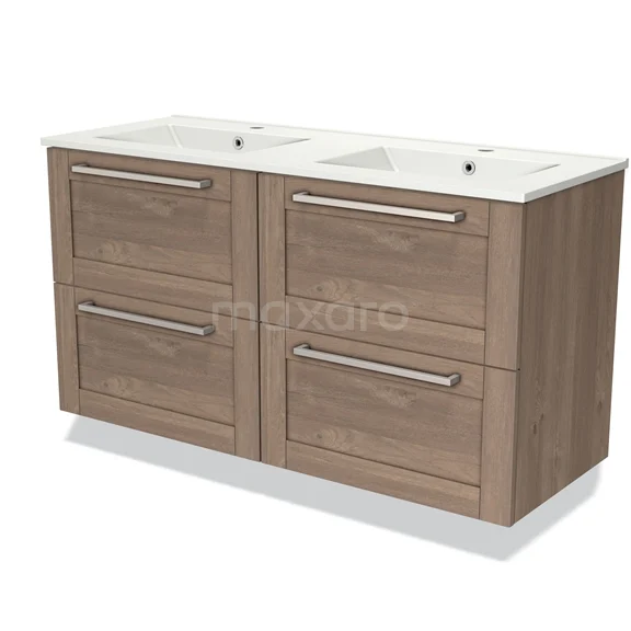 Modulo Waschtische | 120 cm Mittelbraune Eiche Rahmen front Keramik 4 Schubladen