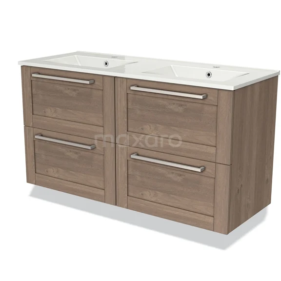 Modulo Waschtische | 120 cm Mittelbraune Eiche Rahmen front Keramik 4 Schubladen