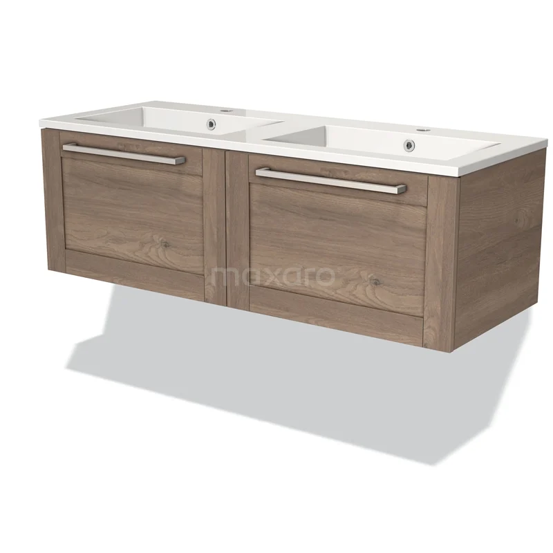 Modulo Waschtische | 120 cm Mittelbraune Eiche Rahmen front Mineralguss 2 nebeneinanderliegende Schubladen