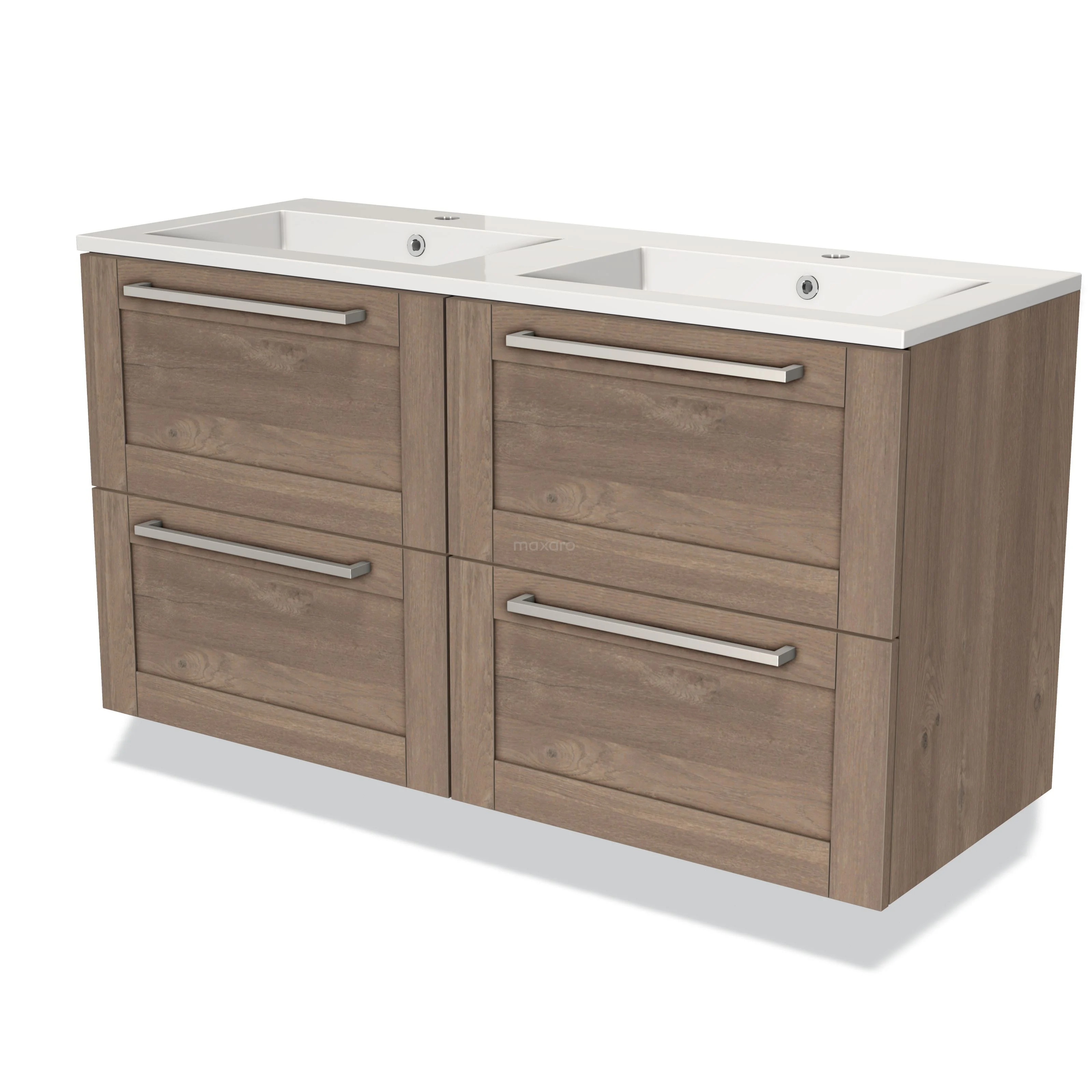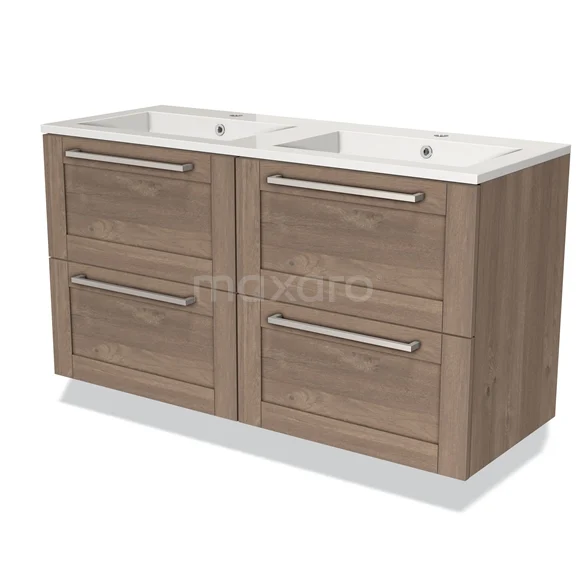 Modulo Waschtische | 120 cm Mittelbraune Eiche Rahmen front Mineralguss 4 Schubladen