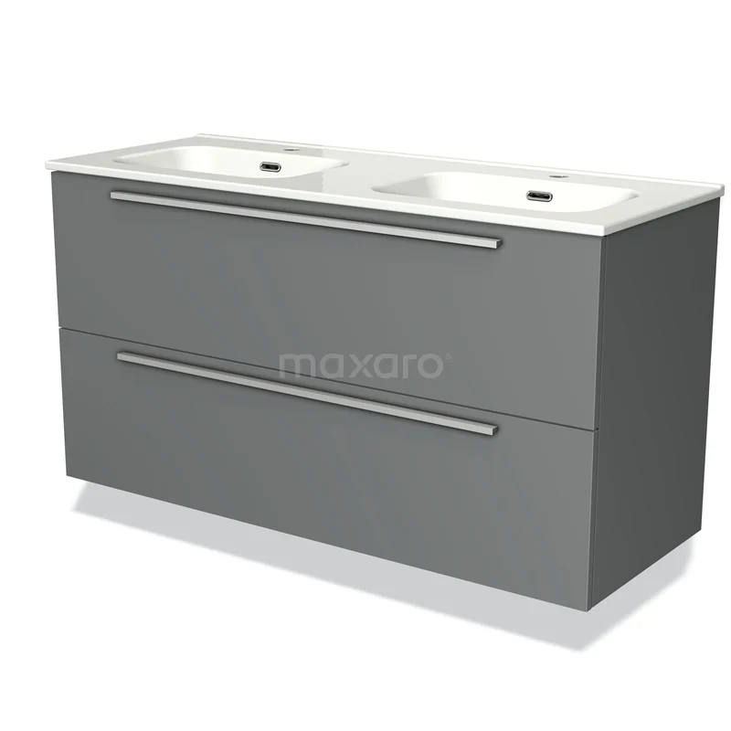 Modulo Waschtische | 120 cm Mittelgrau Flach front Keramik 2 übereinanderliegende Schubladen