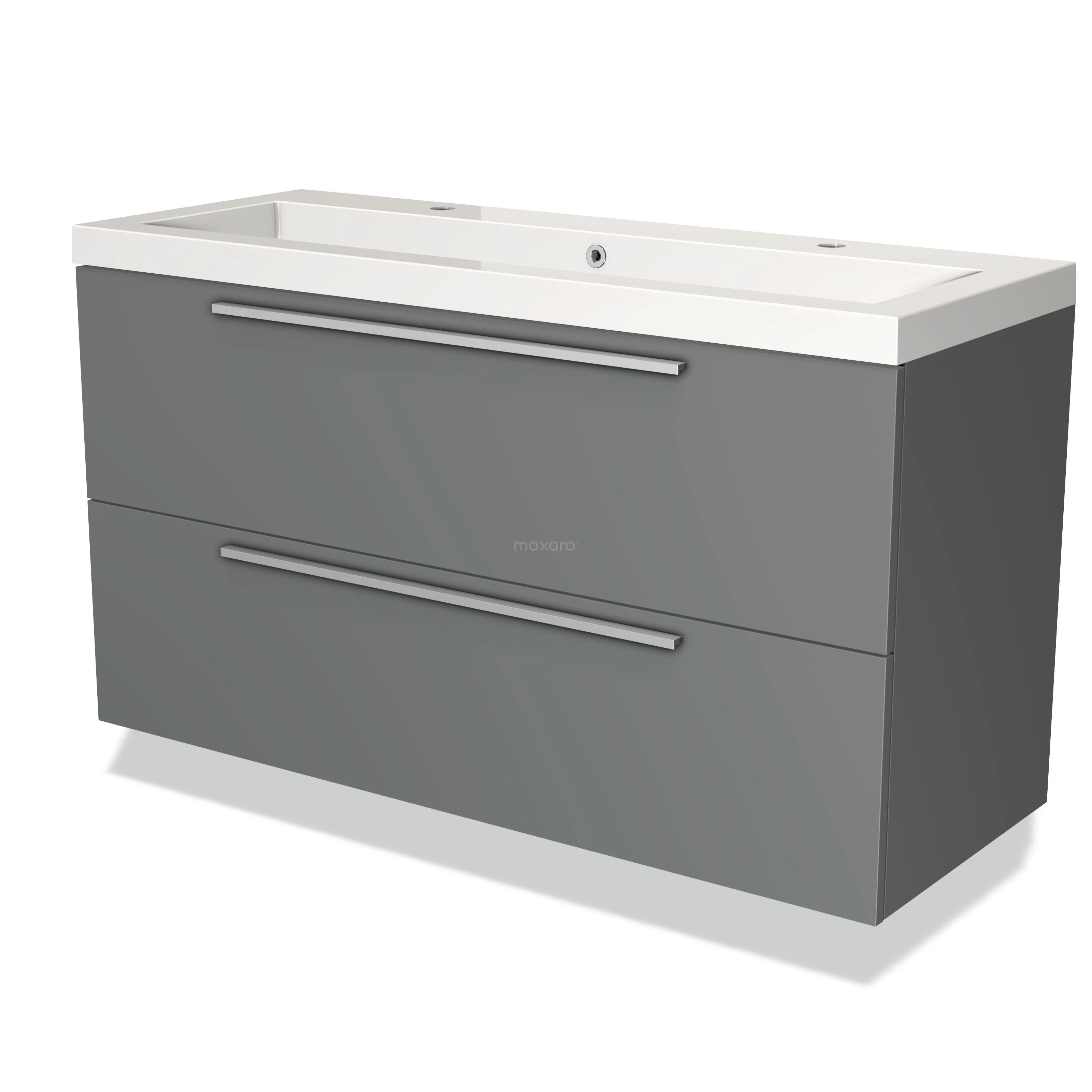 Modulo Waschtische | 120 cm Mittelgrau Flach front Mineralguss 2 übereinanderliegende Schubladen